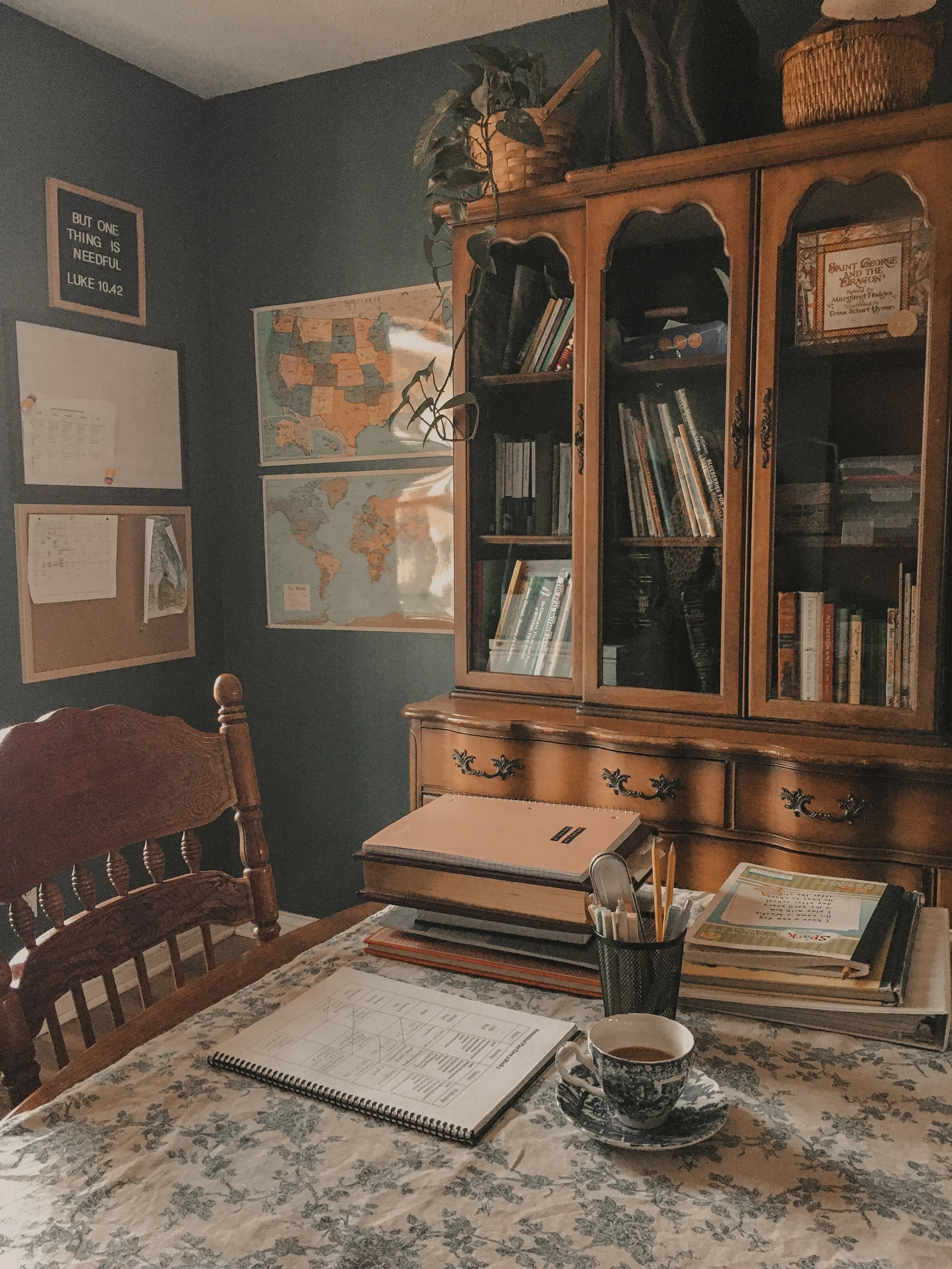 During our first term, I sat with my daughter to help her get the rhythm of this first portion of lessons. Now that we are in term three, she can handle this independently. I am preparing this habit now for later years when my younger children join the table and need help with formal lessons as well.