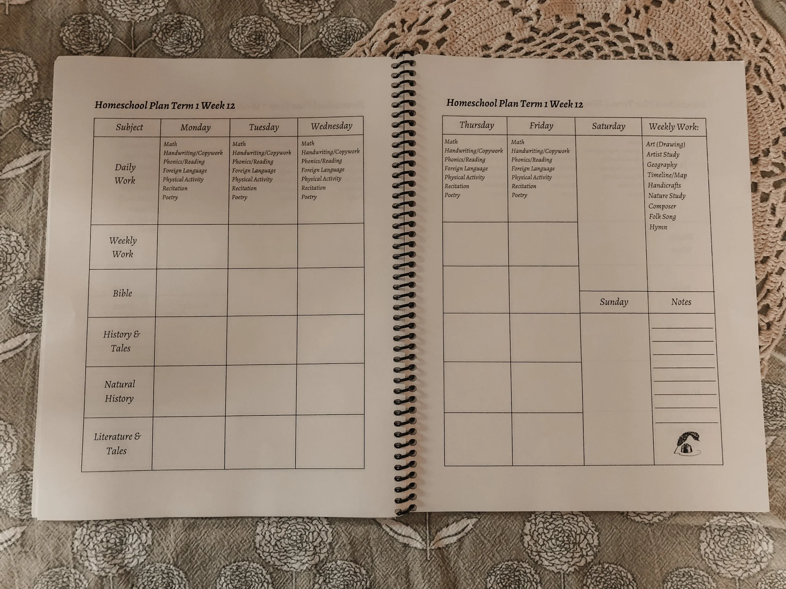 This planner was designed to work exactly alongside of Ambleside Online’s free downloadable schedules for each year.