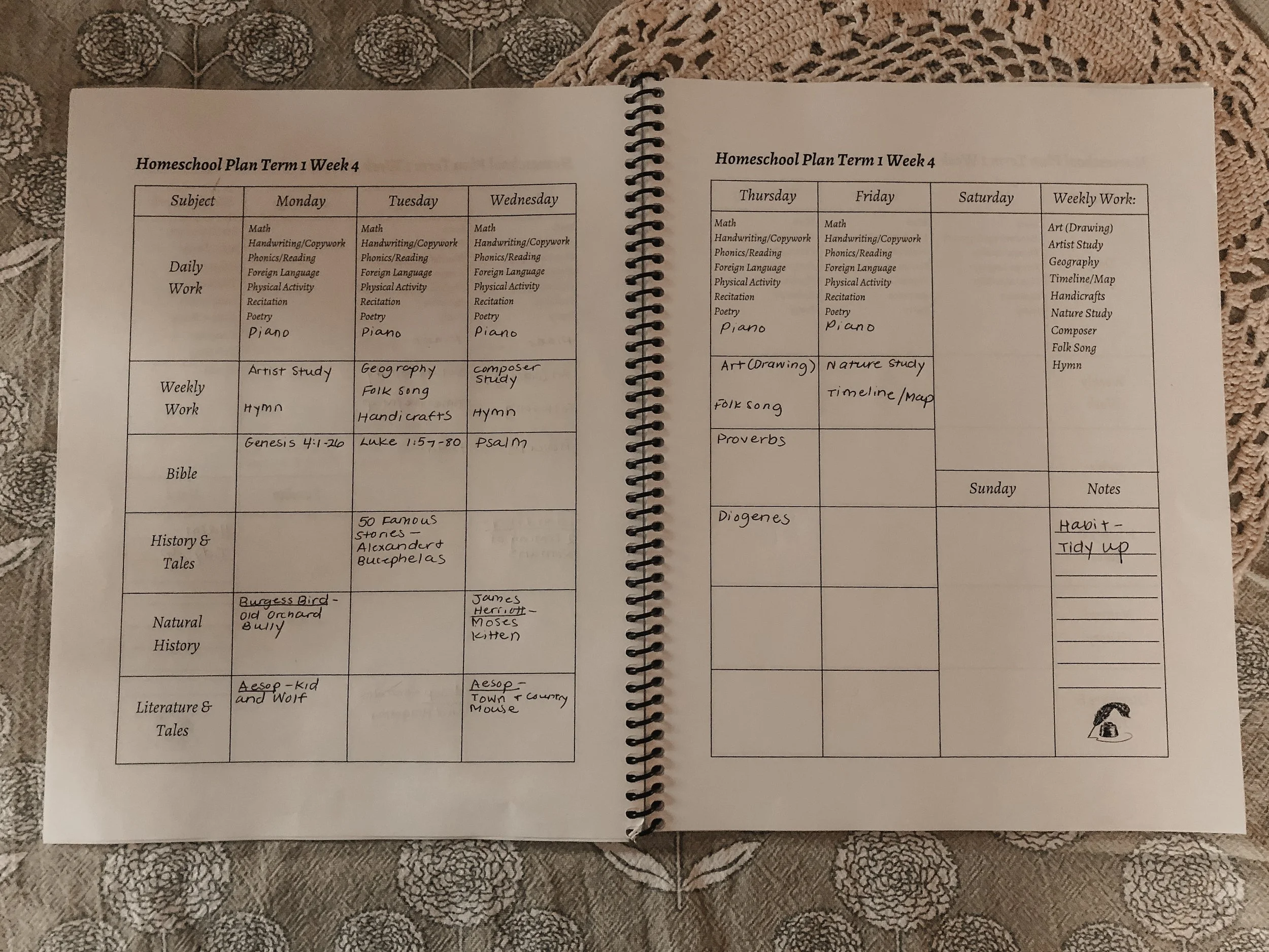 I’ve also included a small section for notes. You can write in whatever you need here. I use it to write down the weekly habit that our family is working on cultivating. I’ve also used it as a place to write in my daughter’s favorite story from the AO readings that week. It could also be used to plan your read alouds for the week. Just whatever you need!